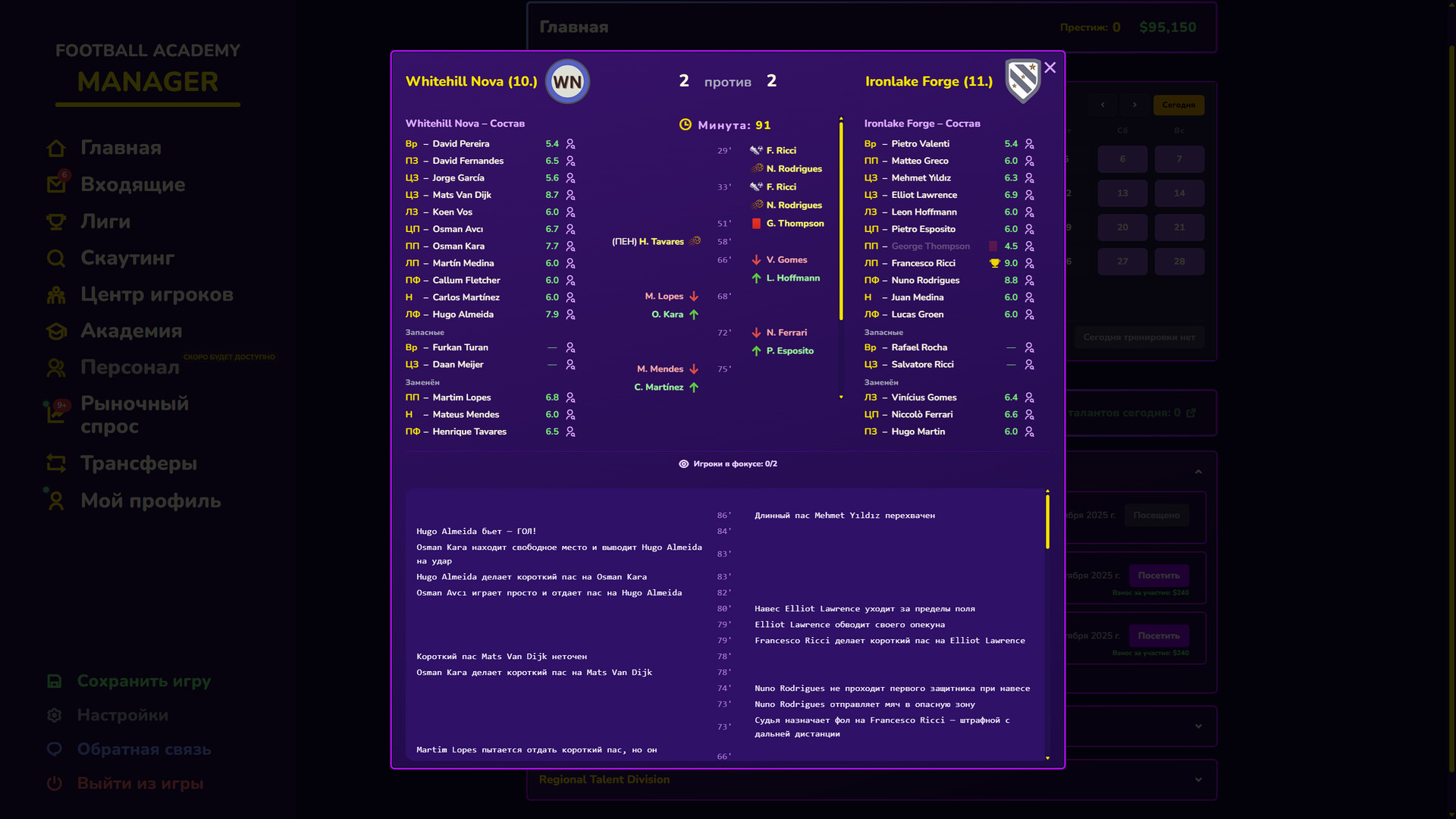 Football Academy Manager — это детализированный спортивный симулятор и стратегия, в которой вы выступаете не в роли тренера основной команды, а в качестве руководителя молодёжной академии футбольного клуба. Ваша задача — выстроить долгосрочную систему развития талантов: от скаутинга юных дарований по всему миру до их обучения, тренировок и постепенной интеграции в первую команду. Вы управляете всеми аспектами работы академии — от инфраструктуры (тренировочные поля, медицинский центр, общежития) до разработки индивидуальных планов развития для каждого воспитанника с учётом его физических, технических и психологических характеристик.