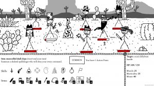 West of Loathing — это юмористическая приключенческая ролевая игра, выполненная в стилистике чёрно-белых каракульных рисунков. Действие происходит в абсурдном, пародийном вестерне, где игроку предстоит покинуть скучную семейную ферму и отправиться на опасные и нелепые Дикие Земли к западу от Ненависти. Вас ждёт мир, наполненный говорящими скелетами, одержимыми бобами ковбоями, призрачными ранчо и демоническими коровами.